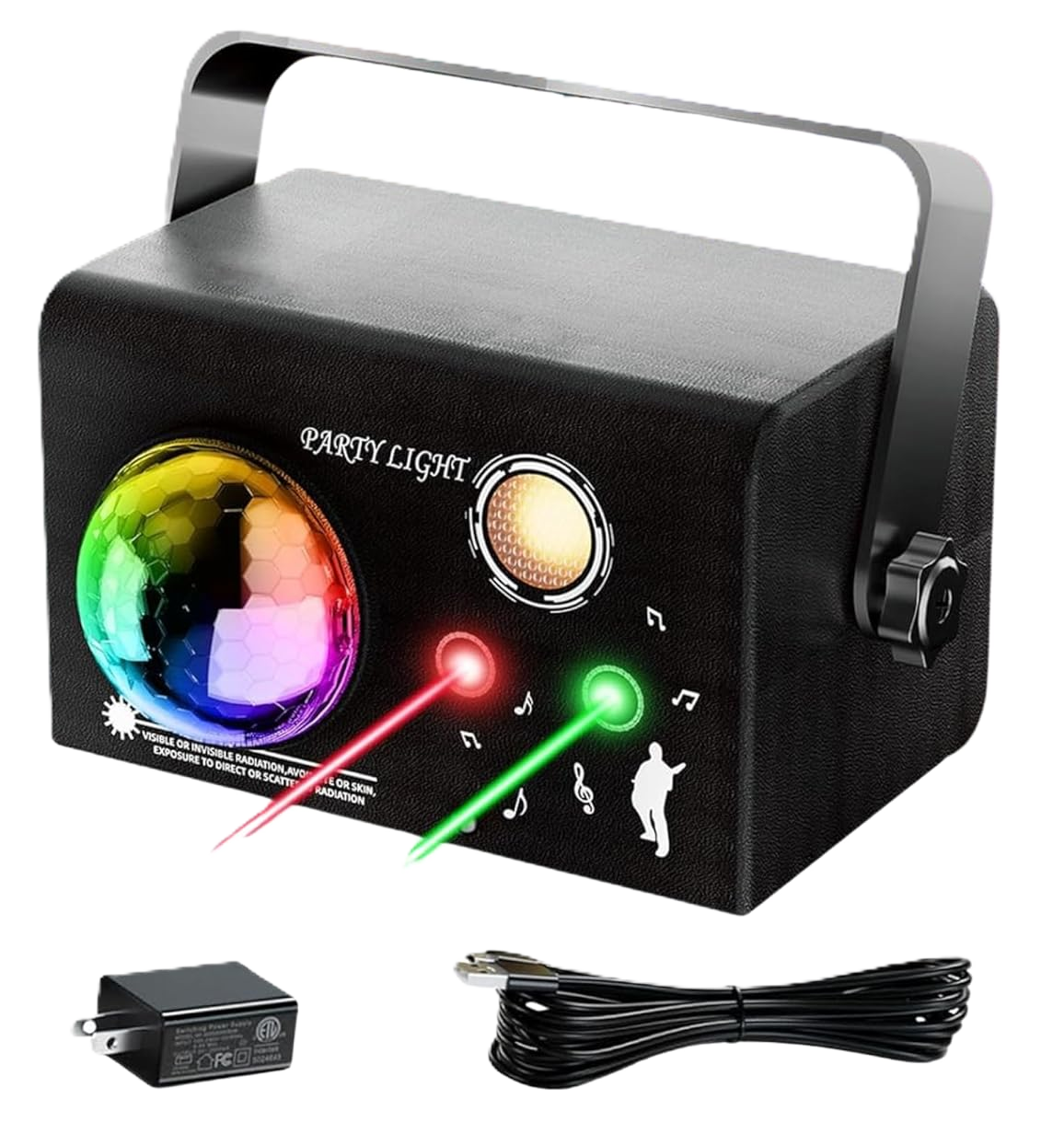 Iluminación LED RGB vibrante: cuenta con LED rojos, verdes y azules que crean patrones coloridos y llamativos para un ambiente de fiesta animado.